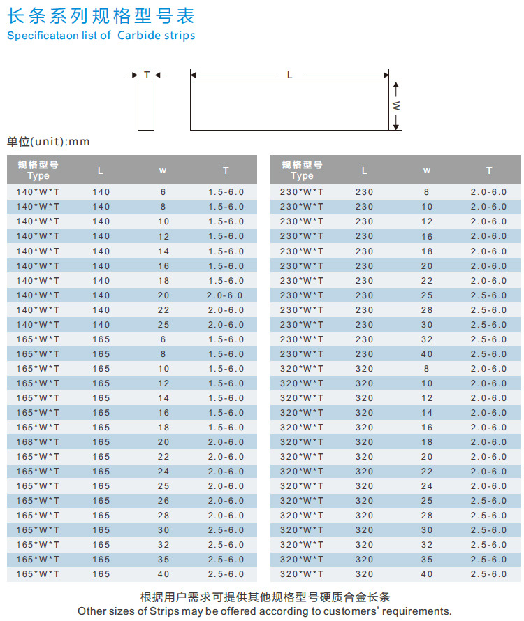 硬質(zhì)合金長條 鎢鋼條適用范圍