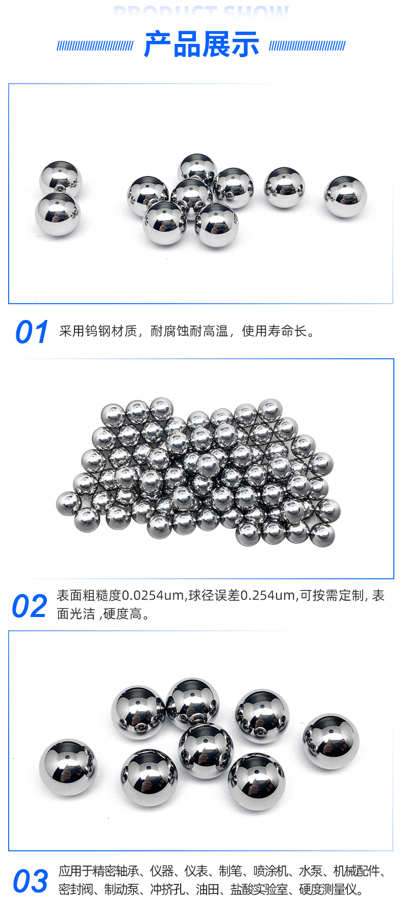 硬質(zhì)合金球硬度達(dá)HRA89-92,耐磨性能為普通鋼球的20倍以上